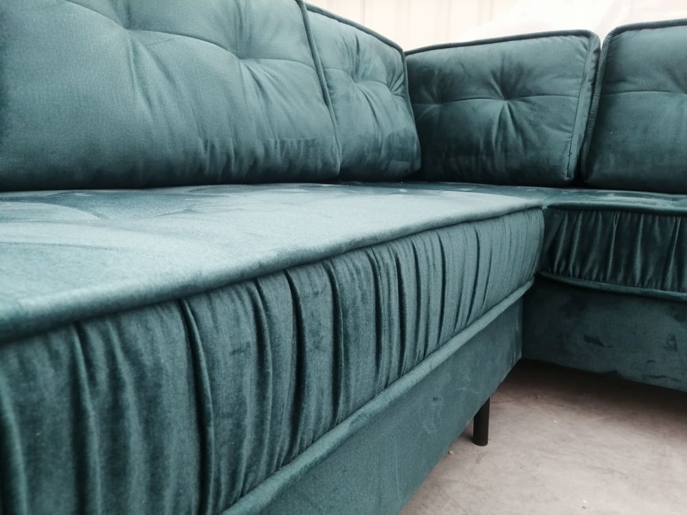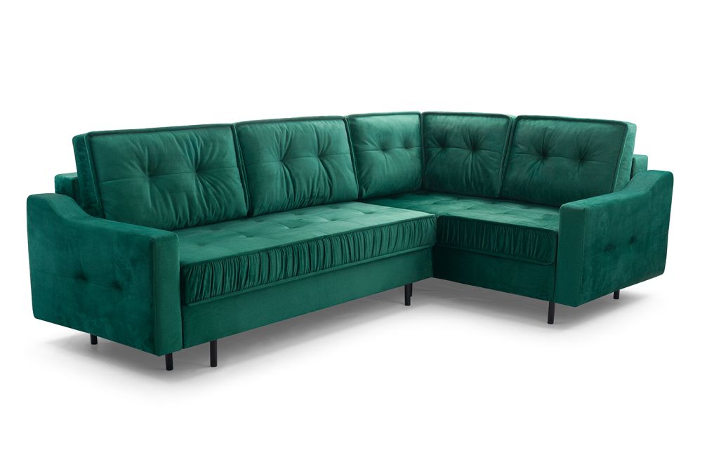 Narożnik welurowy butelkowa zieleń to w praktyce połączenie mody i praktyczności. W przypadku, gdy narożnik miałby być rozkładany jedynie okazjonalnie, wówczas powinniśmy skupić się na tym, aby mebel był komfortowy w pozycji siedzącej. Nieco inaczej wygląda to w sytuacji, kiedy zamierzamy na nim często spać- wówczas model rozkładany wydaje się być strzałem w dziesiątkę. Narożnik butelkowa zieleń to odpowiednia powierzchnia spania – jest to gwarancja komfortowego wypoczynku w pozycji leżącej, co warto mieć na uwadze. Tapicerowane meble pokojowe butelkowa zieleń możemy umieścić właściwie w każdym miejscu w salonie- będą świetnie się prezentować wizualnie.