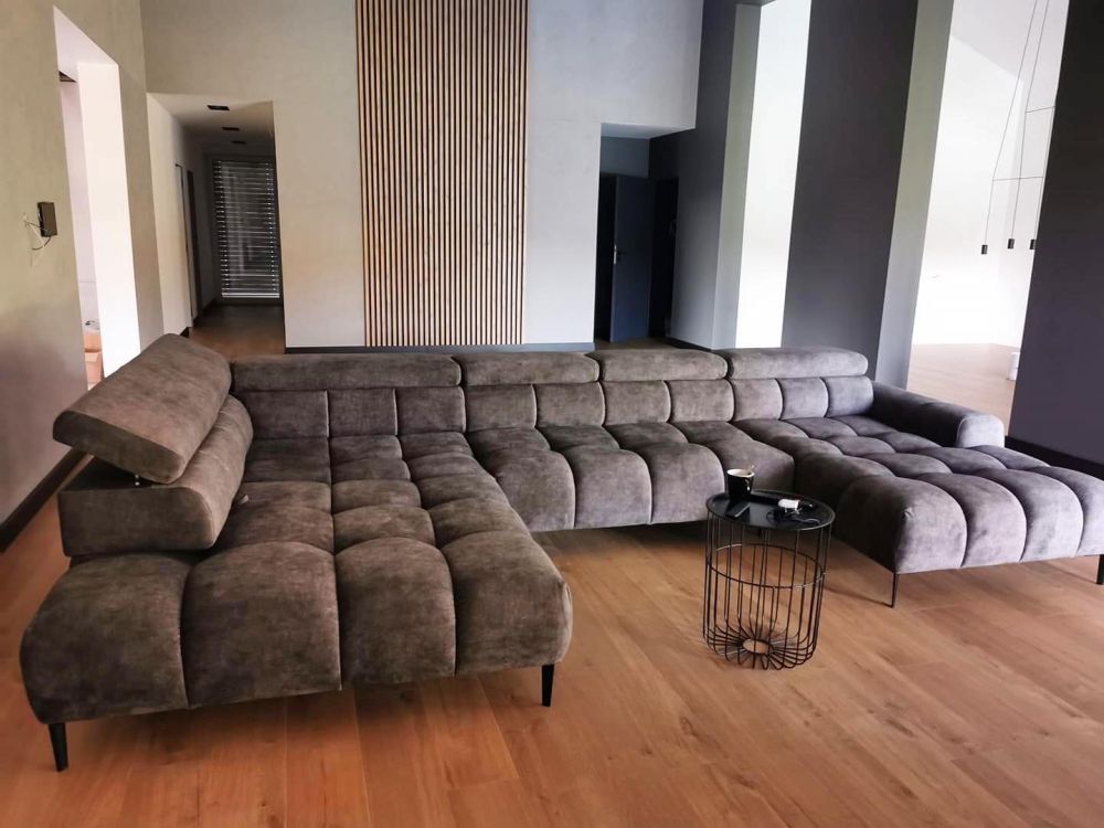 Kanapa narożna na środku pokoju – nowoczesność i funkcjonalność