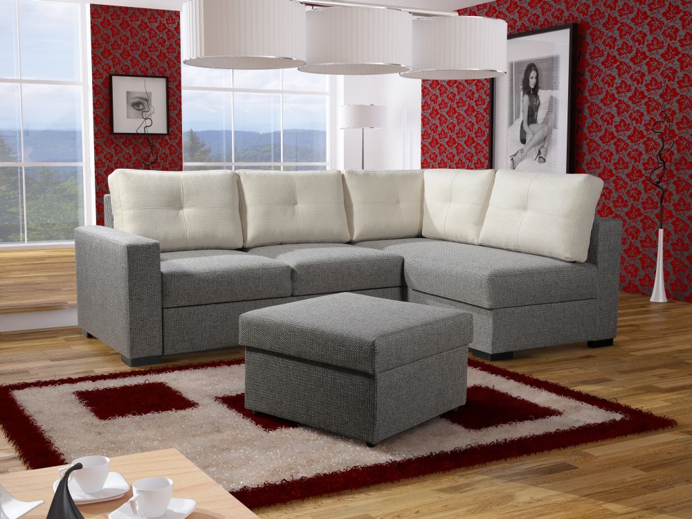Rozkładana kanapa z pufą i schowkiem jak narożnik SLIM