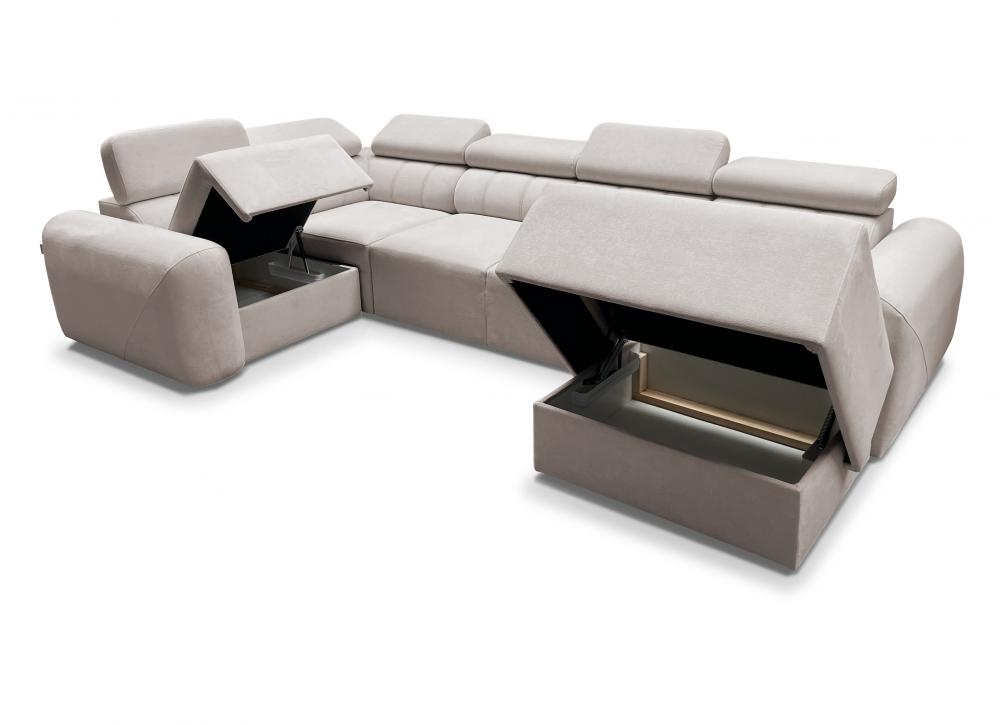 Narożnik U z dwoma pojemnikami funkcją spania AMADEUSZ 6