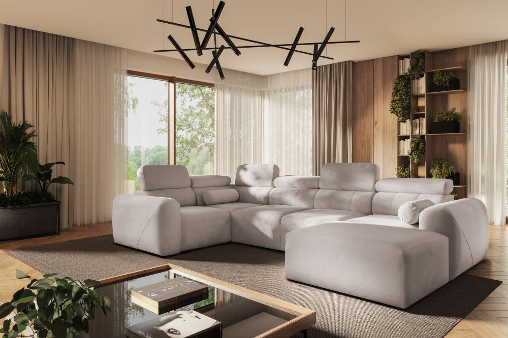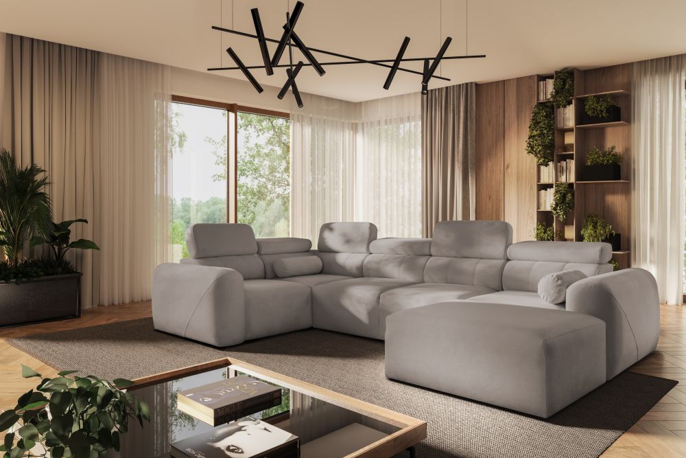 Asymetryczny narożnik U z funkcją spania AMADEUSZ 4 typu PUMA to propozycja dla osób, które cenią nowoczesne wzornictwo, wygodę i funkcjonalność w jednym. Ten wyjątkowy mebel przyciąga uwagę eleganckim designem, a jednocześnie zapewnia maksymalny komfort codziennego użytkowania. To idealny wybór do przestronnych salonów, gdzie narożnik stanie się centralnym punktem aranżacji.