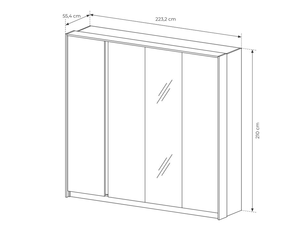 - wymiary: szer 223,2/ gł 55,4/ wys 210.