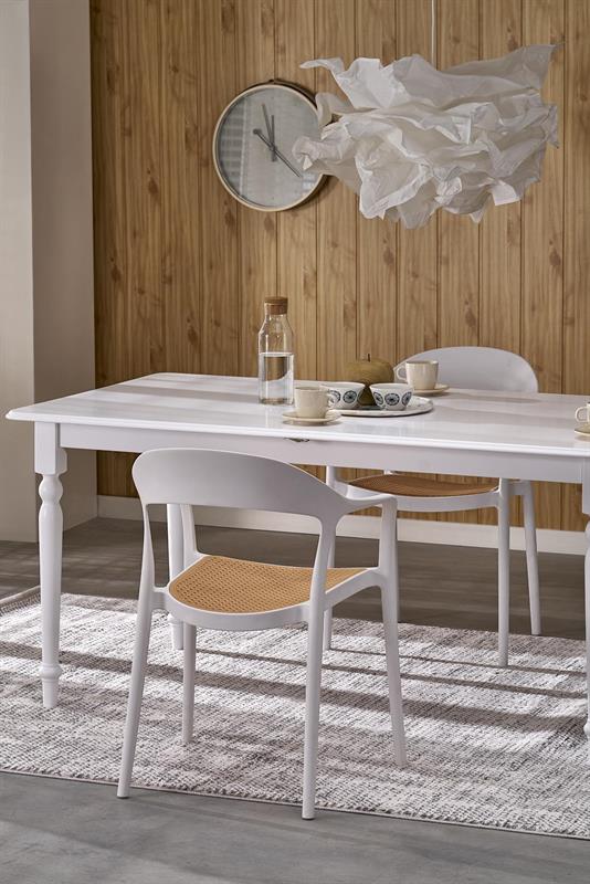 Stół NELSON to kwintesencja klasycznej elegancji z nutą nowoczesnego minimalizmu. Jego ponadczasowy design przyciąga uwagę prostą formą, subtelnym wykończeniem i śnieżnobiałym kolorem, który rozjaśnia każde wnętrze. To idealny wybór do jadalni, salonu czy kuchni urządzonej w stylu klasycznym, skandynawskim, a nawet modern classic.