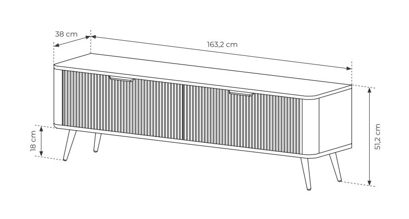- wymiary: szerokość 163,2 cm / wysokość 51,2 cm / głębokość 38 cm,