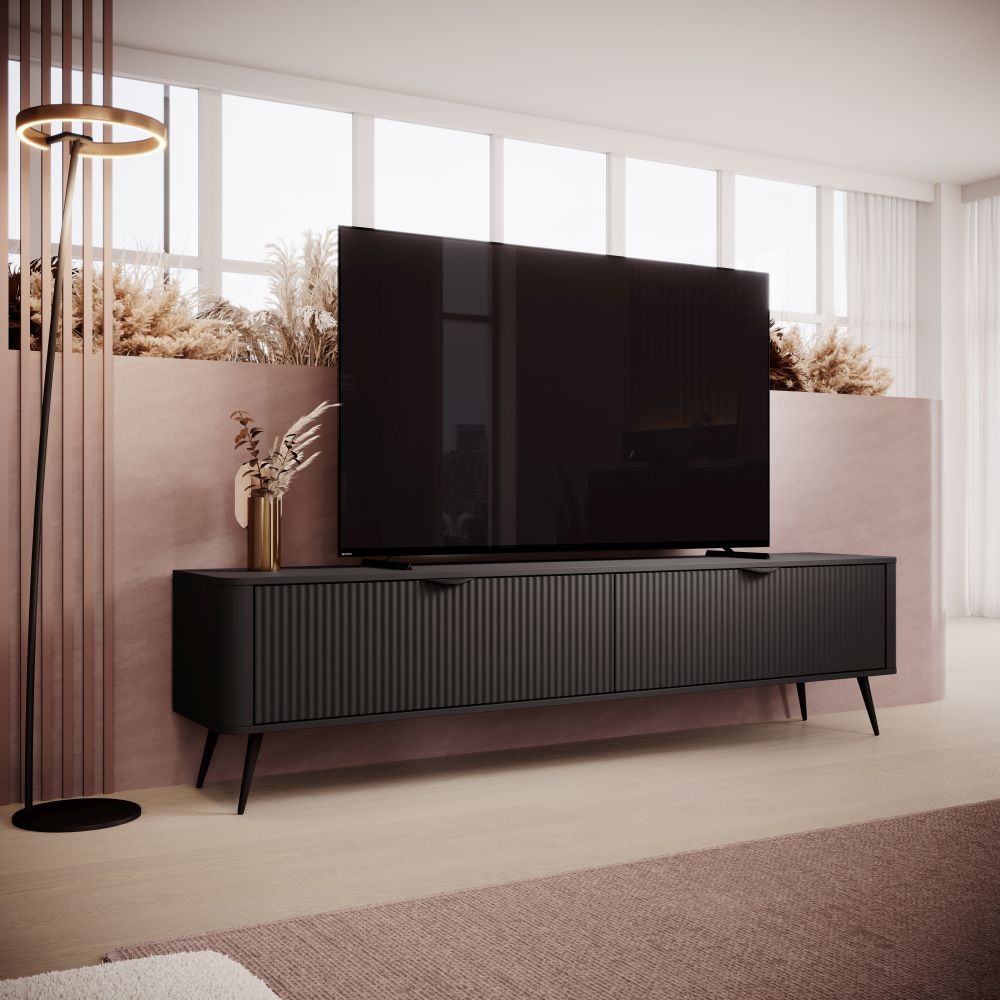 Czarna szafka RTV z zaokrąglonymi bokami 200 cm MOCCA