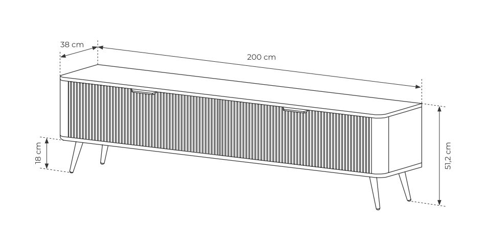 - wymiary: szerokość 200 cm / wysokość 51,2 cm / głębokość 38 cm,