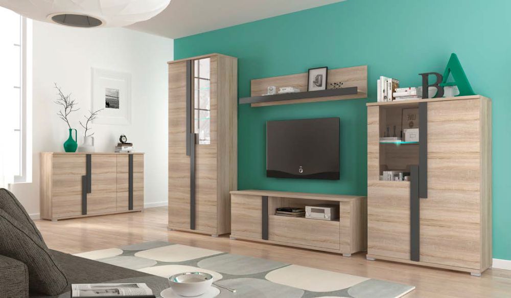 Dąb sonoma meblościanka z komodą i RTV MARKO.