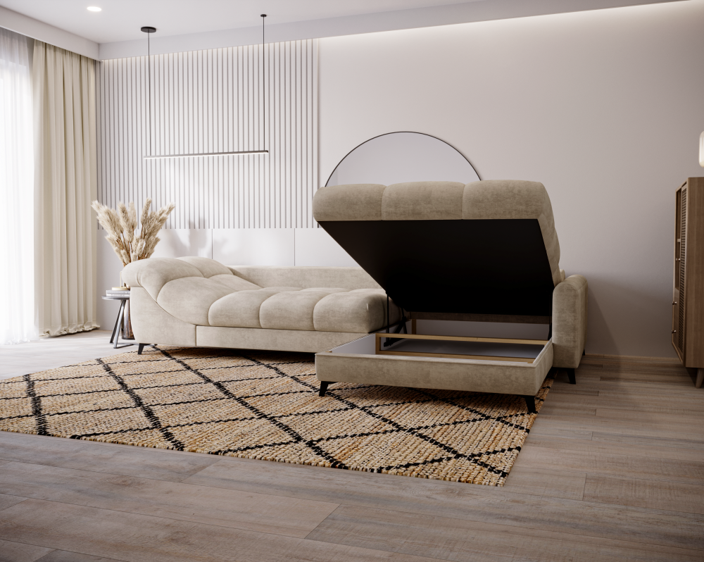 Model został zaprojektowany z myślą o codziennym użytkowaniu – zarówno jako elegancka strefa wypoczynku, jak i wygodne miejsce do snu.