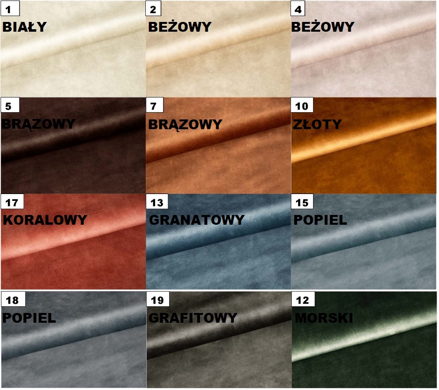 Wykonanie w ekskluzywnej, tkaninie hydrofobowej TORRE. Tkanina o właściwościach miękkiego pluszu, bardzo miły w dotyku, pięknie prezentuje się na większych powierzchniach tworząc zjawiskową grę cieni i przetarć. TORRE to tkanina zmywalna, ograniczone wchłanianie płynów (technologia WATER BLOCKED), nawet trudne zabrudzenia usuniemy wilgotną szmatką, wysoka odporność na ścieranie 100000 cykli, pielęgnacja łagodnymi środkami czyszczącymi. Możliwość wykonania na zamówienie również w innych tkaninach – prosimy kontaktować się bezpośrednio z działem sprzedaży.