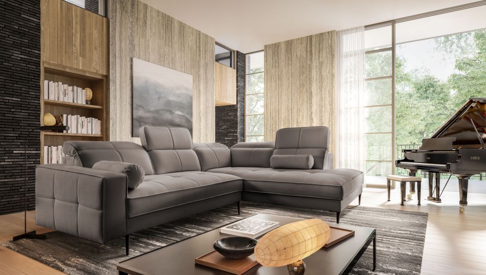 To mebel premium, który nie tylko wyróżnia się solidną konstrukcją i perfekcyjnym wykończeniem, ale także zachwyca funkcjonalnymi detalami – pięć regulowanych zagłówków pozwala dopasować komfort wypoczynku do własnych potrzeb, a szerokie siedzisko sprzyja chwilom pełnego relaksu.