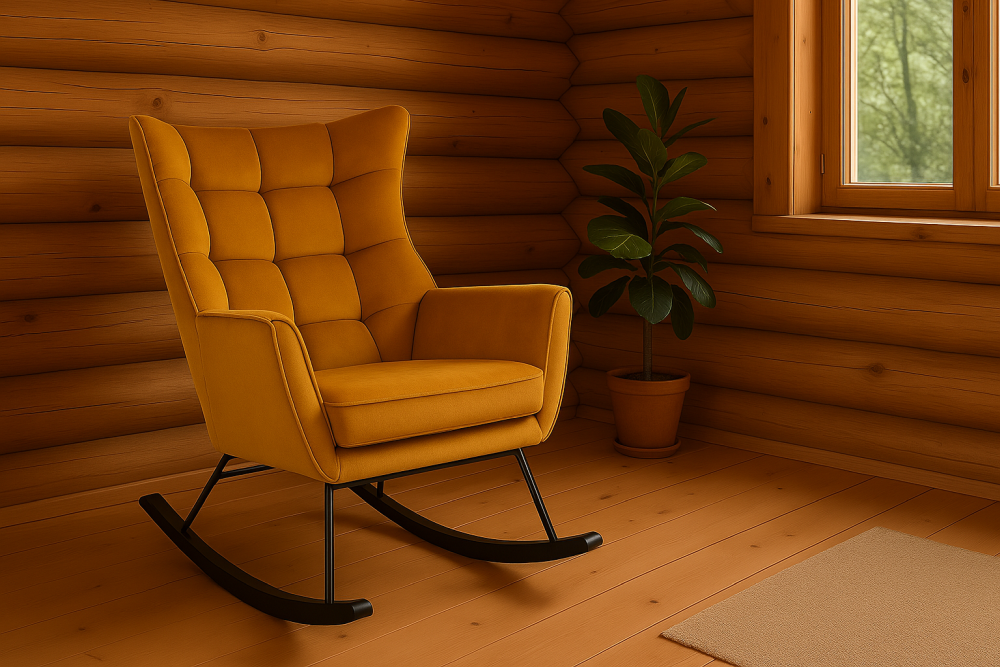 Fotel musztardowy bujany BAZYLIUSZ