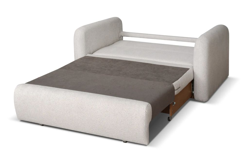 Siedzisko oraz tył oparcia wypełnione zostały sprężyną bonell i wysokogatunkową pianką N30, co przekłada się na optymalne podparcie ciała zarówno podczas siedzenia, jak i snu. Przód oparcia wykonano z pianki T2315, która zwiększa wygodę użytkowania i odporność na odkształcenia. Funkcja spania typu wózek umożliwia szybkie i bezproblemowe rozkładanie, tworząc równą i stabilną powierzchnię do odpoczynku.