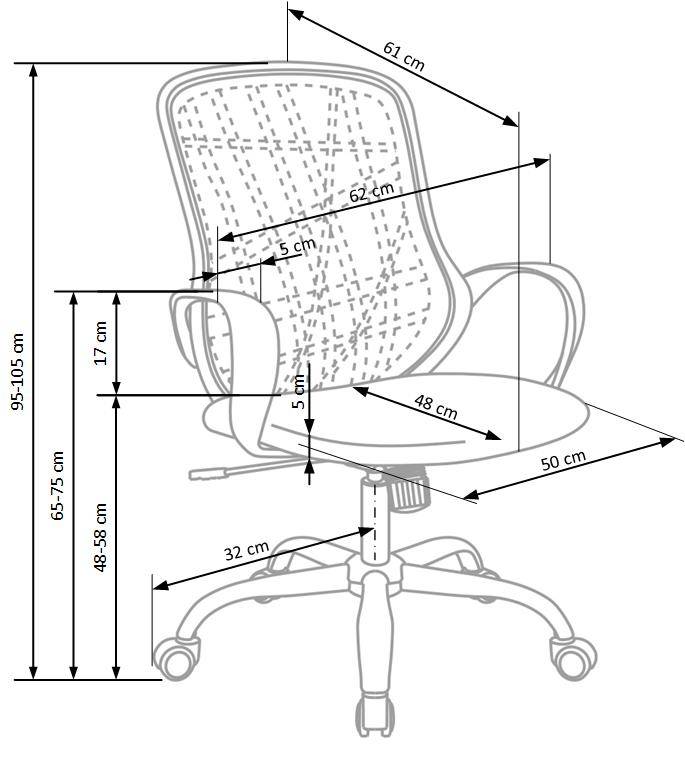 Wymiary tego fotela (60 cm szerokości, 65 cm głębokości, wysokość regulowana od 116 do 124 cm, wysokość siedziska regulowana od 47 do 55 cm) zapewniają odpowiednią ergonomię i wsparcie dla pleców, co jest kluczowe dla zachowania dobrej postawy podczas pracy przy biurku.