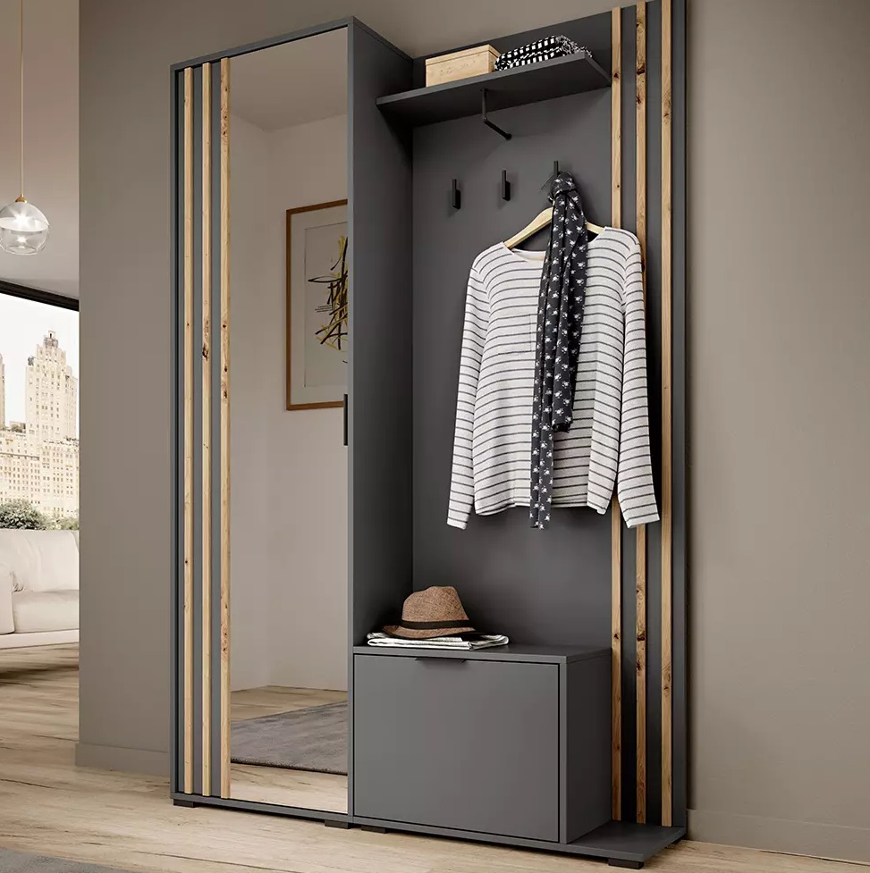 - w zestawie: szafa odzieżowa z lustrem, szafka na buty bez poduszki, panel z wieszakami.