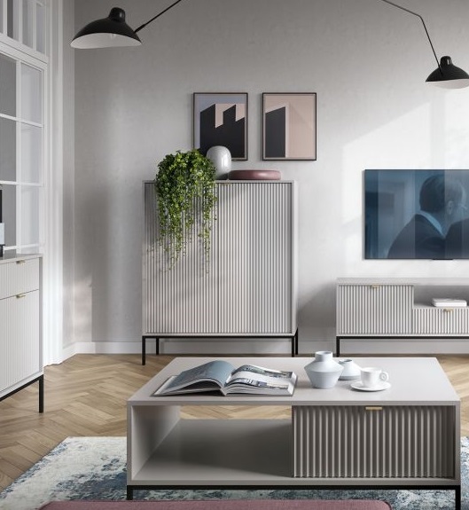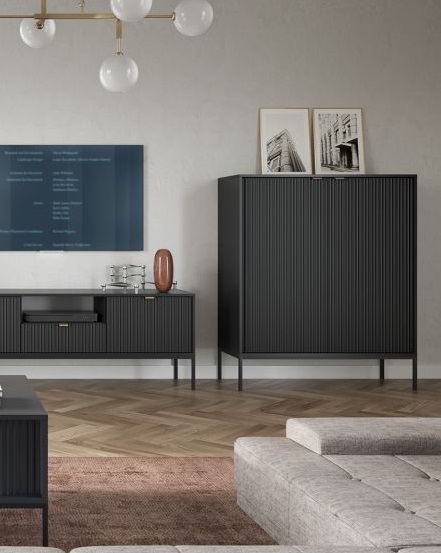 Przedstawiamy naszą nową kolekcję NORTH – industrialną komodę, która zachwyca kontrastowym połączeniem kolorów i eleganckimi detalami w prążki. Kontrastowe połączenie dekoru w najmodniejszych kolorach tego sezonu! Całości formy dopełnia efektowny i elegancki motyw w prążki oraz złote dodatki. Elegancka czerń lub jasna szarość w parze z połyskującym złotem to ponadczasowe zestawienie, które doskonale sprawdza się w aranżacji wnętrz.