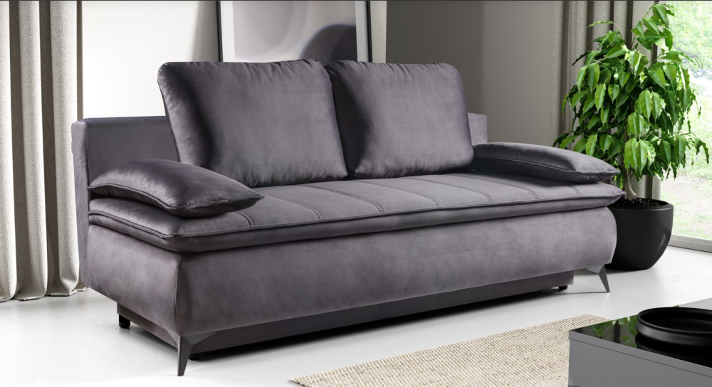 Praktyczny pojemnik na pościel pozwala zachować porządek i maksymalnie wykorzystać przestrzeń, a uniwersalny narożnik daje swobodę aranżacji – możesz dopasować ustawienie kanapy do swoich potrzeb i układu wnętrza. To rozwiązanie szczególnie docenią pary, które szukają mebla wielofunkcyjnego, ale bez kompromisów w kwestii wygody.