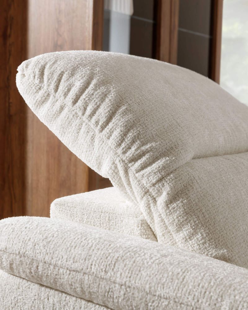 Plecy kanapy są w całości obite tkaniną, co pozwala ustawić ją w dowolnym miejscu – nawet na środku salonu – i wciąż cieszyć się jej eleganckim wyglądem z każdej strony.