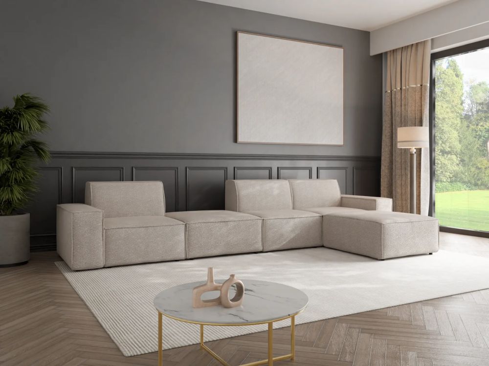 Plecy mebla zostały w pełni tapicerowane tkaniną obiciową, dzięki czemu kanapa narożna segmentowa BLOK doskonale prezentuje się również na środku pomieszczenia. W kolekcji dostępne są starannie wyselekcjonowane tkaniny premium – odporne na ścieranie, przyjemne w dotyku i łatwe w pielęgnacji. Bogata gama kolorystyczna pozwala dopasować mebel do wnętrz w stylu nowoczesnym, loftowym, minimalistycznym czy modern classic.