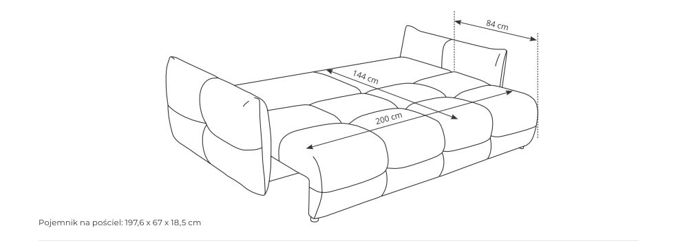 - powierzchnia spania: 200cm x 144cm,