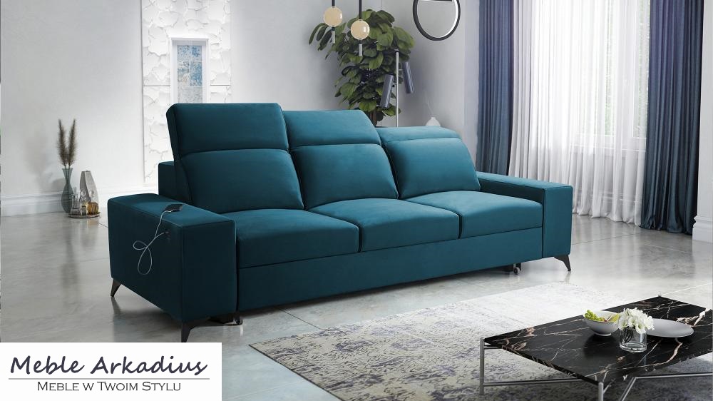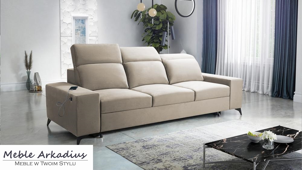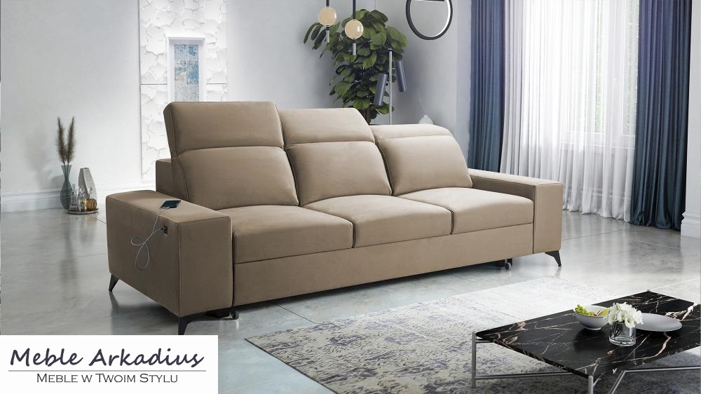 Luksusowa kanapa rozkładana w systemie delfin z gniazdem USB LEMEL