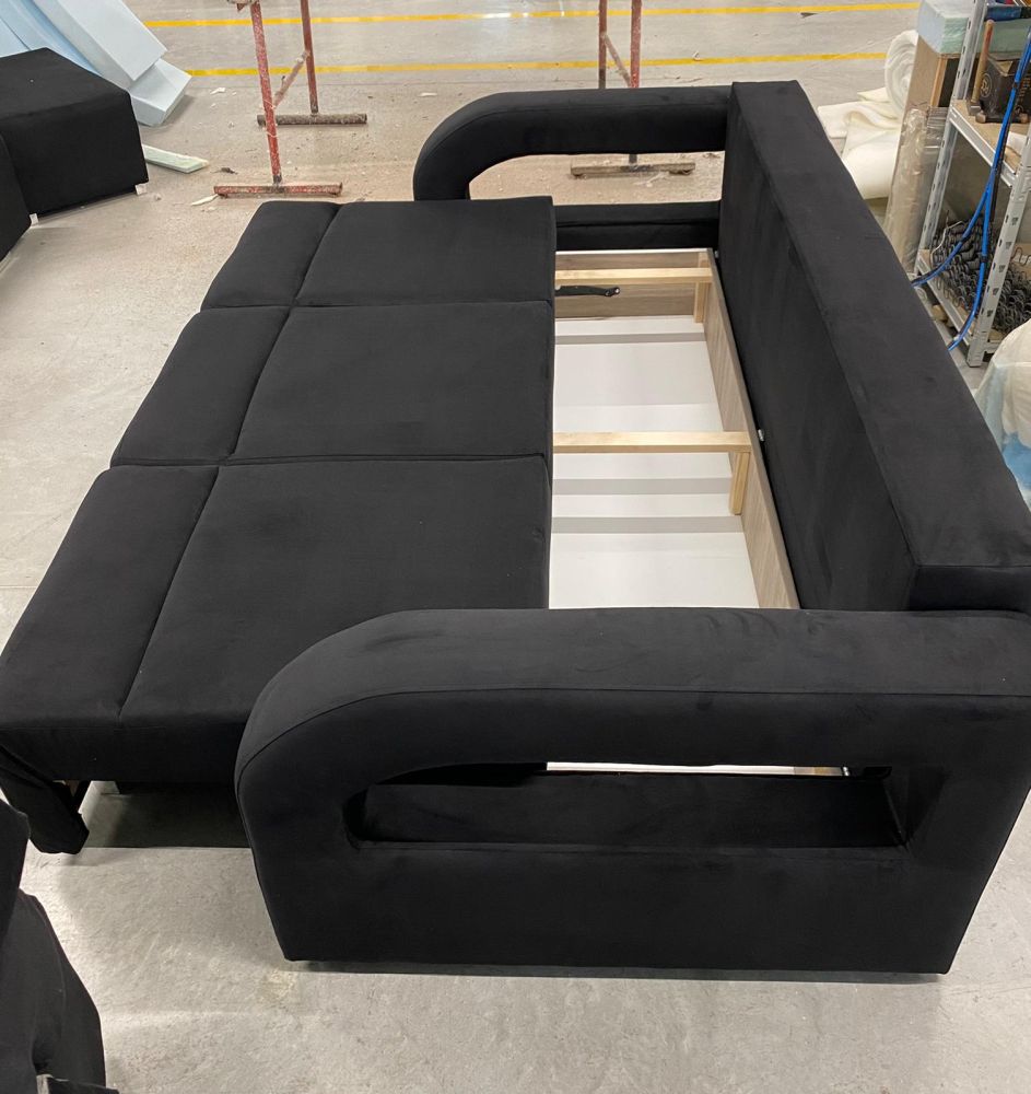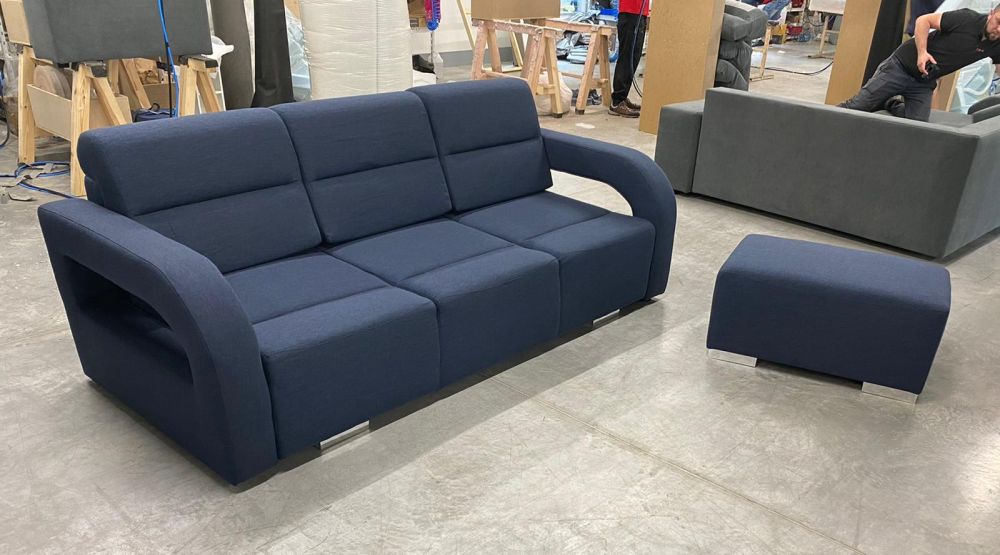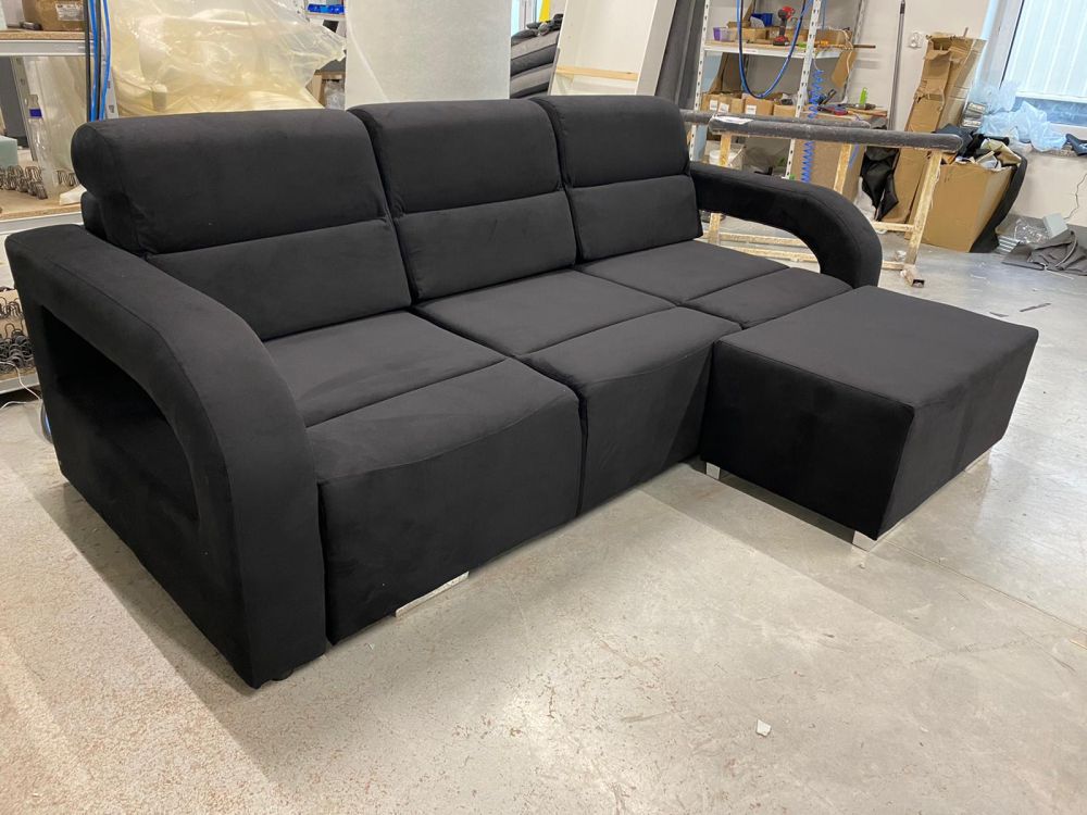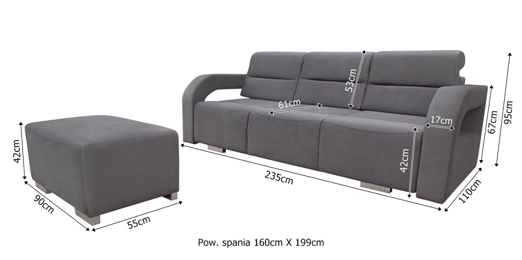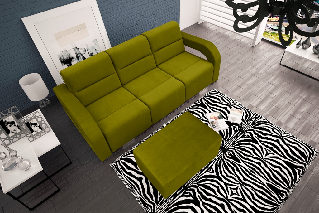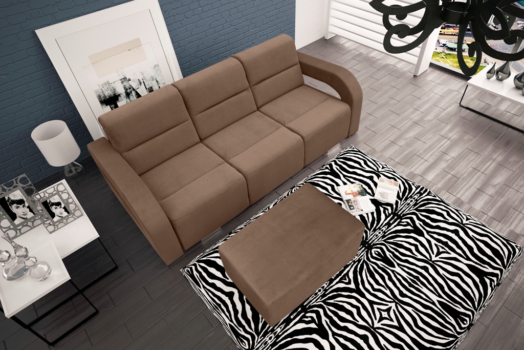 Modna kanapa z pufą z dużą powierzchnią spania ALIZE.
