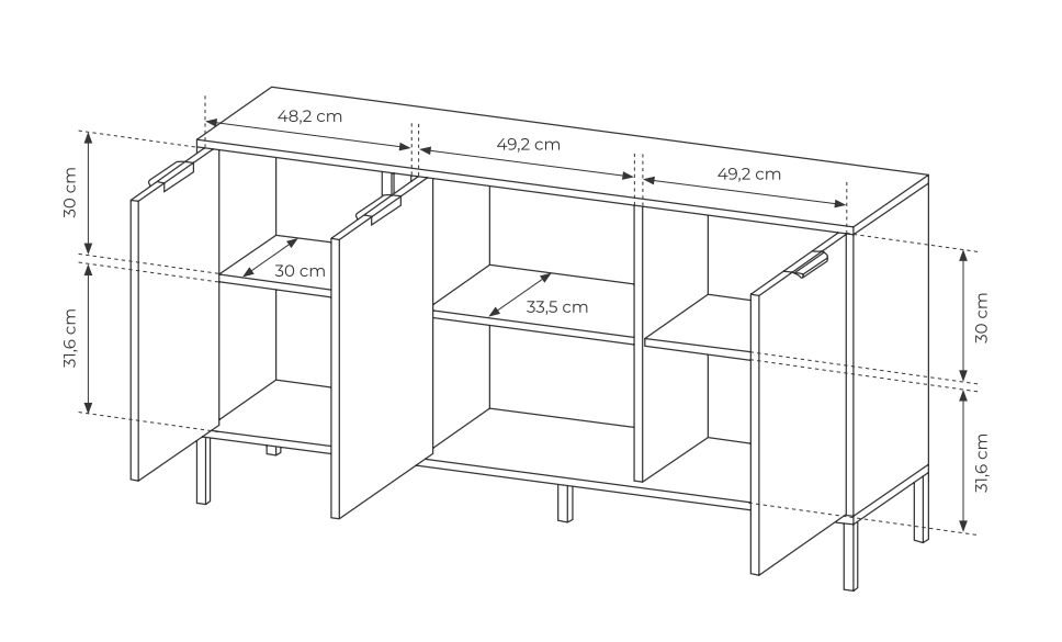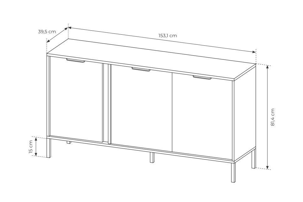 Dzięki zastosowaniu wysokiej jakości płyt laminowanych oraz ABS, nasza komoda 153 cm szerokości emanuje luksusem i solidnością. Zawiasy wpuszczane i prowadnice kulkowe zapewniają płynne otwieranie szuflad oraz stabilność konstrukcji. Jej wymiary sprawiają, że doskonale sprawdzi się zarówno w większych, jak i mniejszych przestrzeniach, zapewniając optymalne wykorzystanie miejsca.