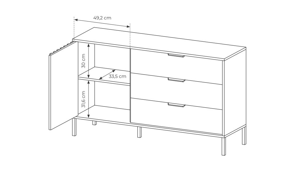 Wykonana z najwyższej jakości płyty laminowanej, nasza komoda drewno z szarym zapewnia trwałość i wytrzymałość na lata użytkowania. Zawiasy wpuszczane sprawiają, że drzwi otwierają się płynnie i bezproblemowo, dodając do użytkowej wartości mebla. Prowadnice kulkowe gwarantują pełen wysuw szuflad, co ułatwia organizację przechowywanych przedmiotów.