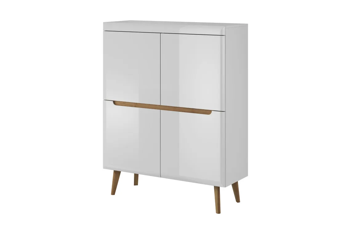 Komoda kwadratowa wysoka w stylu skandynawskim w białym połysku NORI 107.