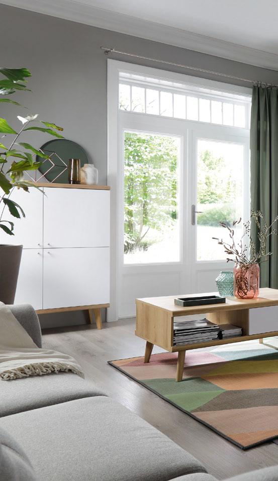 Dębowy dekor i biały front to harmonijne zestawienie, które nadaje komodzie PRIMAVERA 2 niezwykłego uroku. Dębowy odcień Riviera wnosi do pomieszczenia ciepło i naturalność, podkreślając jego przytulny charakter. Biały front z kolei wprowadza lekkość i optycznie powiększa przestrzeń, tworząc efektowne kontrasty.