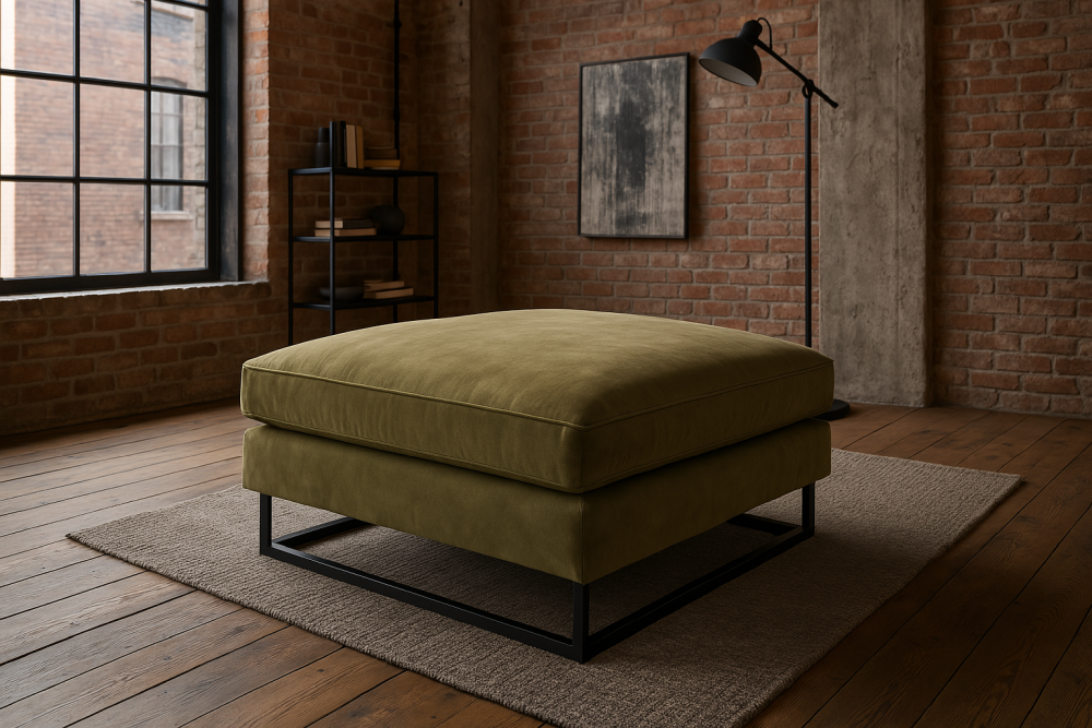 Loftowa ogromna pufa na płozach CUBA to doskonałe uzupełnienie dużego narożnika z tej samej kolekcji, która zachwyca nowoczesnym designem i wyjątkową wygodą. Dzięki swoim imponującym wymiarom – 112 x 112 cm – oraz solidnej konstrukcji, pufa CUBA staje się nie tylko praktycznym dodatkiem, ale również stylowym akcentem, idealnym do wnętrz loftowych i industrialnych.