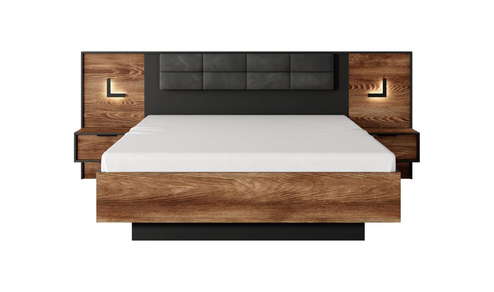 Dzięki systemowi zawiasów wpuszczanych oraz pełnemu wysuwowi szuflad z cichym domykiem, korzystanie z łóżka Mokkaro będzie nie tylko wygodne, ale także przyjemne dla ucha. Oświetlenie LED w stolikach nocnych w zestawie dodaje elegancji i stwarza przyjemny nastrój w sypialni.