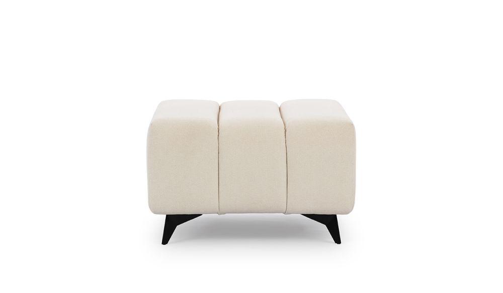 Podstawa pufy opiera się na solidnych, czarnych metalowych nogach, które nadają jej nowoczesnego wyglądu i zapewniają stabilność. Ich subtelna forma doskonale komponuje się z resztą mebla, tworząc harmonijną całość, która wpasuje się w każdy styl wnętrza – od minimalistycznego po bardziej klasyczny.