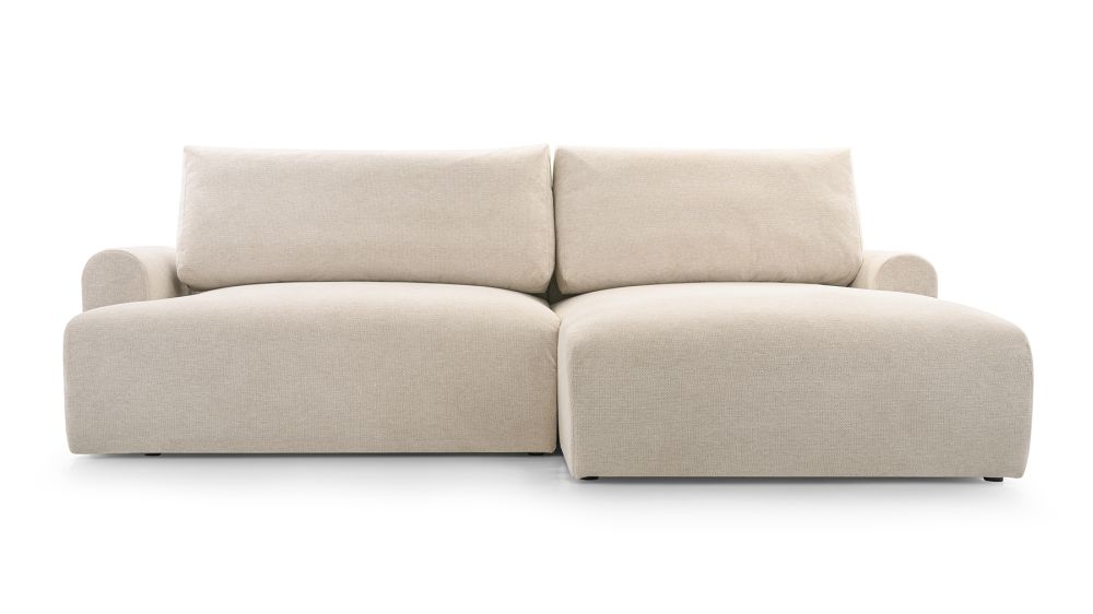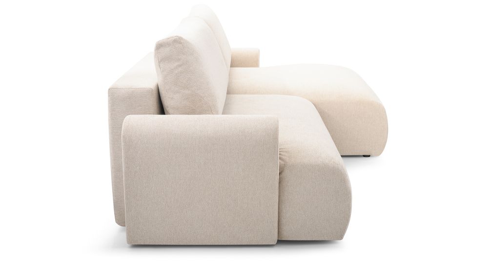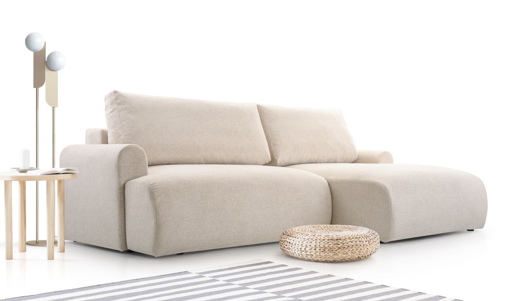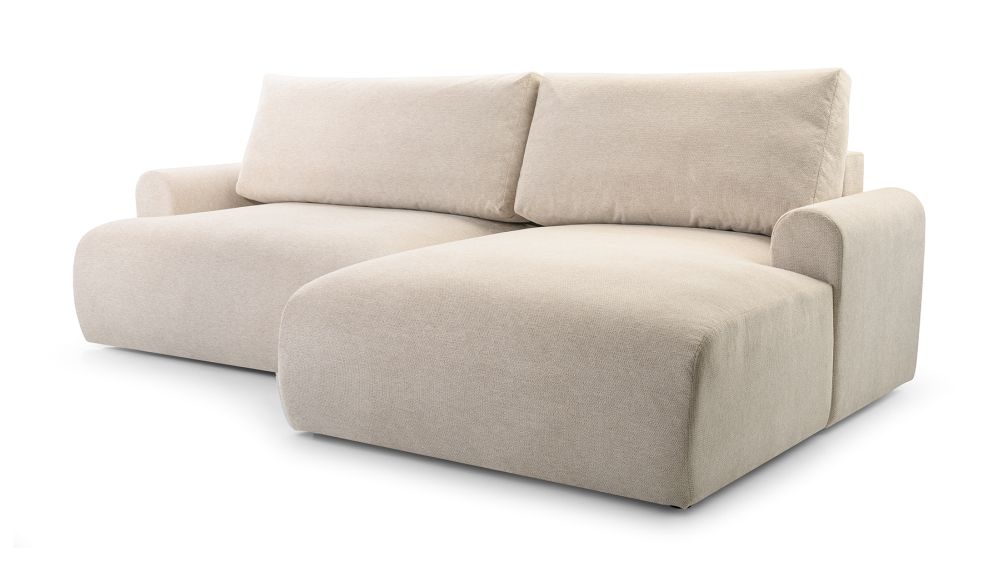Mimo swoich niewielkich rozmiarów, prezentowana mała kanapa narożna nie ustępuje pod względem funkcjonalności. Jej największym atutem jest funkcja spania, którą można aktywować za pomocą wygodnego automatycznego systemu. Wystarczy chwila, by przekształcić tę małą kanapę w wygodne łóżko, oferujące komfortowy sen. Dodatkowy pojemnik na pościele pozwala na przechowywanie pościeli i poduszek, co jest niezwykle praktyczne, zwłaszcza w mniejszych przestrzeniach.