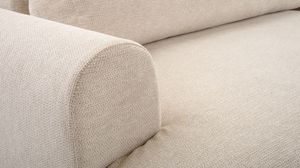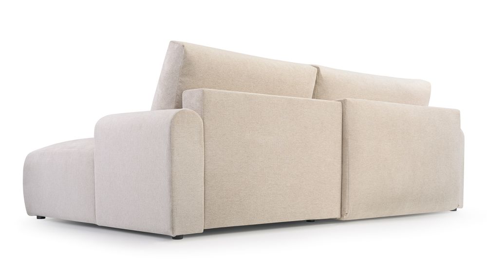 Pod elegancką powierzchnią kryje się solidna konstrukcja, która zapewnia stabilność i trwałość. Konstrukcja z litego drewna iglastego stanowi solidne podstawy mebla, gwarantując jego długowieczność. Siedziska wsparte na sprężynach bonellowych oraz wygodna wysokość siedziska zapewniają wyjątkowy komfort użytkowania, zarówno podczas codziennego odpoczynku, jak i podczas snu. Czarne ślizgacze dodają lekkości całej konstrukcji, umożliwiając jednocześnie łatwe przemieszczanie mebla po pomieszczeniu.