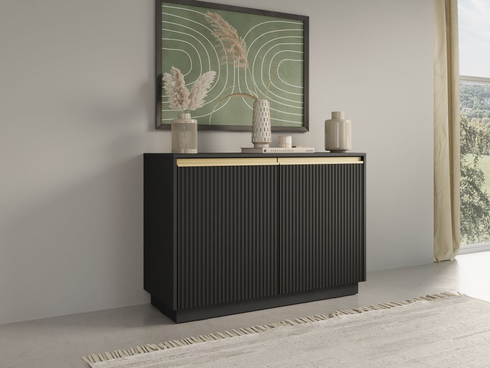 Komoda DIANA od Meble Arkadius to nie tylko mebel, ale prawdziwa ozdoba każdego wnętrza. Dzięki kombinacji głębokiej, matowej czerni grafitowej z subtelnymi akcentami złota, komoda staje się centrum uwagi, przyciągając wzrok każdego, kto wejdzie do pomieszczenia. Jej minimalistyczny, a zarazem luksusowy charakter doskonale wpisuje się w nowoczesne przestrzenie, nadając im szyku i niepowtarzalnego stylu.