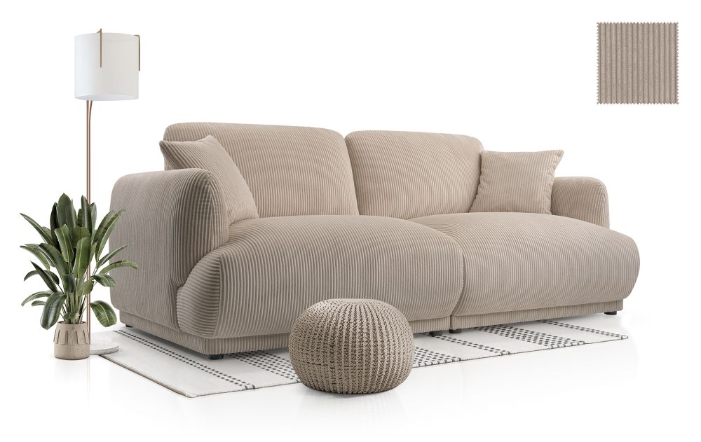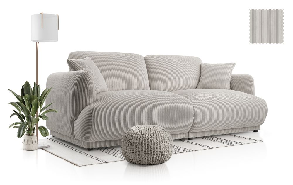 Meble Arkadius oferują tę sofę z szerokim wyborem tkanin klasy premium. Na zdjęciach zachwyca modny, przyjemny w dotyku sztruks, który podkreśla miękkość formy i dbałość o detale. Ale jeśli szukasz czegoś bardziej wyrafinowanego lub subtelnego, do wyboru są także inne ekskluzywne wykończenia: aksamitne, hydrofobowe, o strukturze boucle i nie tylko. Sofa staje się dzięki temu jeszcze bardziej osobista – dopasowana nie tylko do przestrzeni, ale i do Twojego stylu życia.