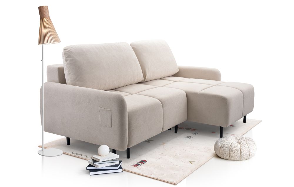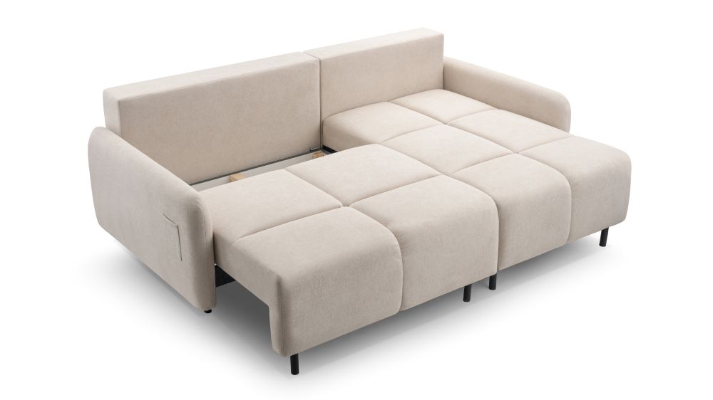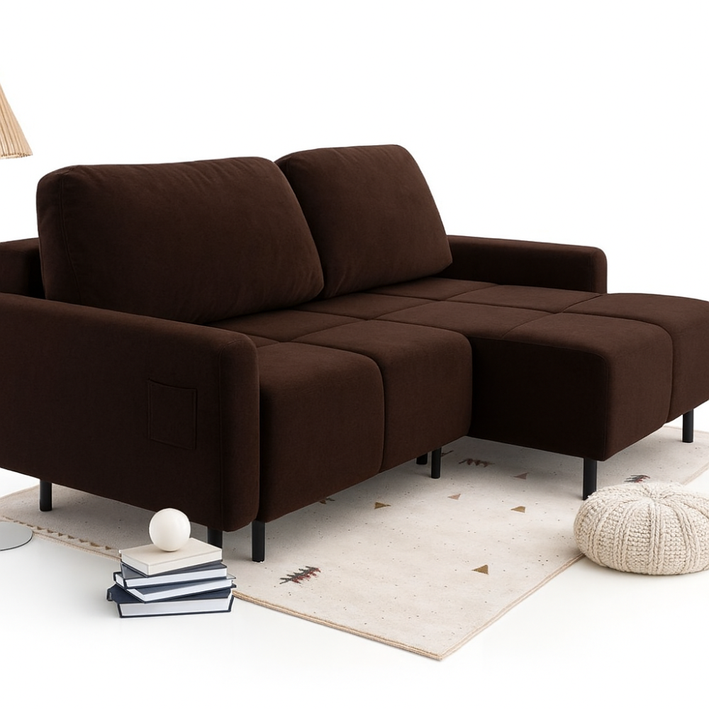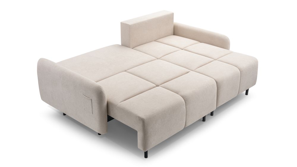 To doskonałe połączenie stylu, wygody i praktyczności. Dzięki kompaktowym wymiarom sprawdzi się nawet w mniejszych salonach, a jednocześnie zapewni wygodne miejsce do spania na co dzień. Nowoczesne, metalowe nóżki i luksusowe tkaniny premium dodają mu wyjątkowego charakteru.