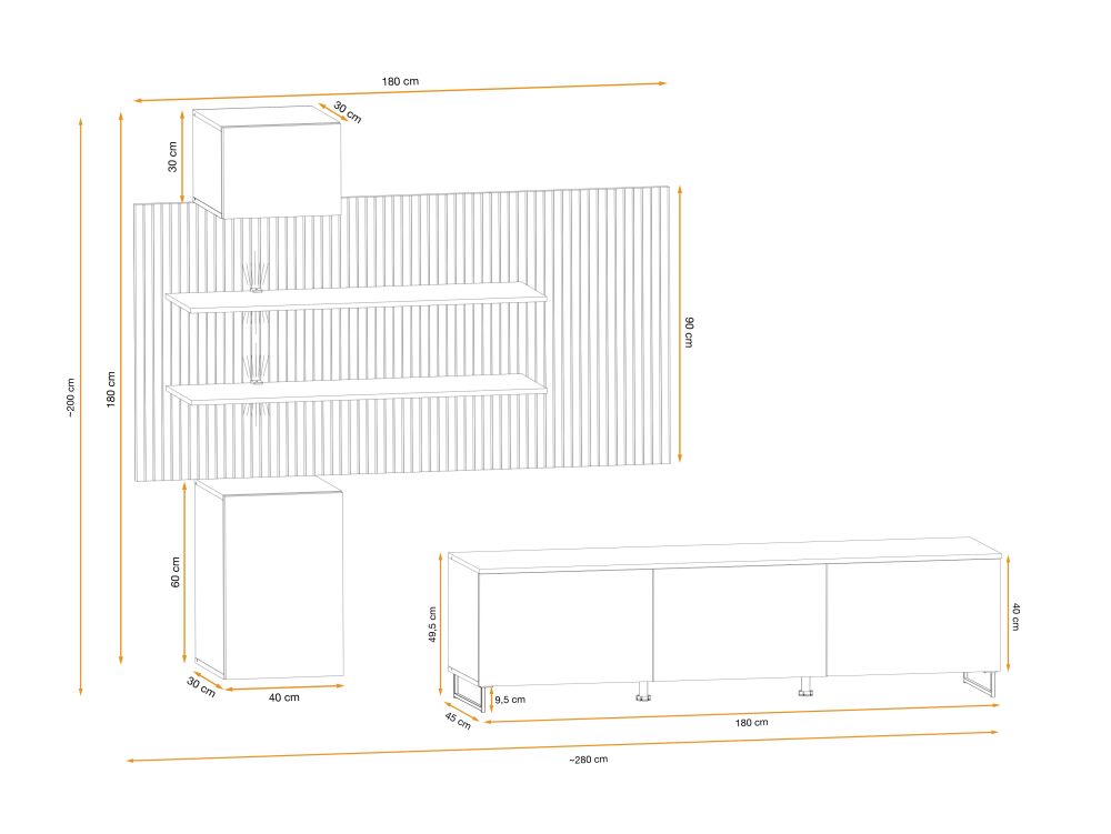 - szafka RTV – szer 180/ wys 49,5/ gł 4 cm,