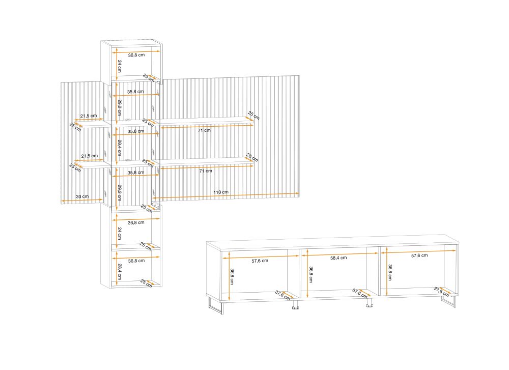 Meblościanka RTV lamele z oświetleniem LED PRISMA