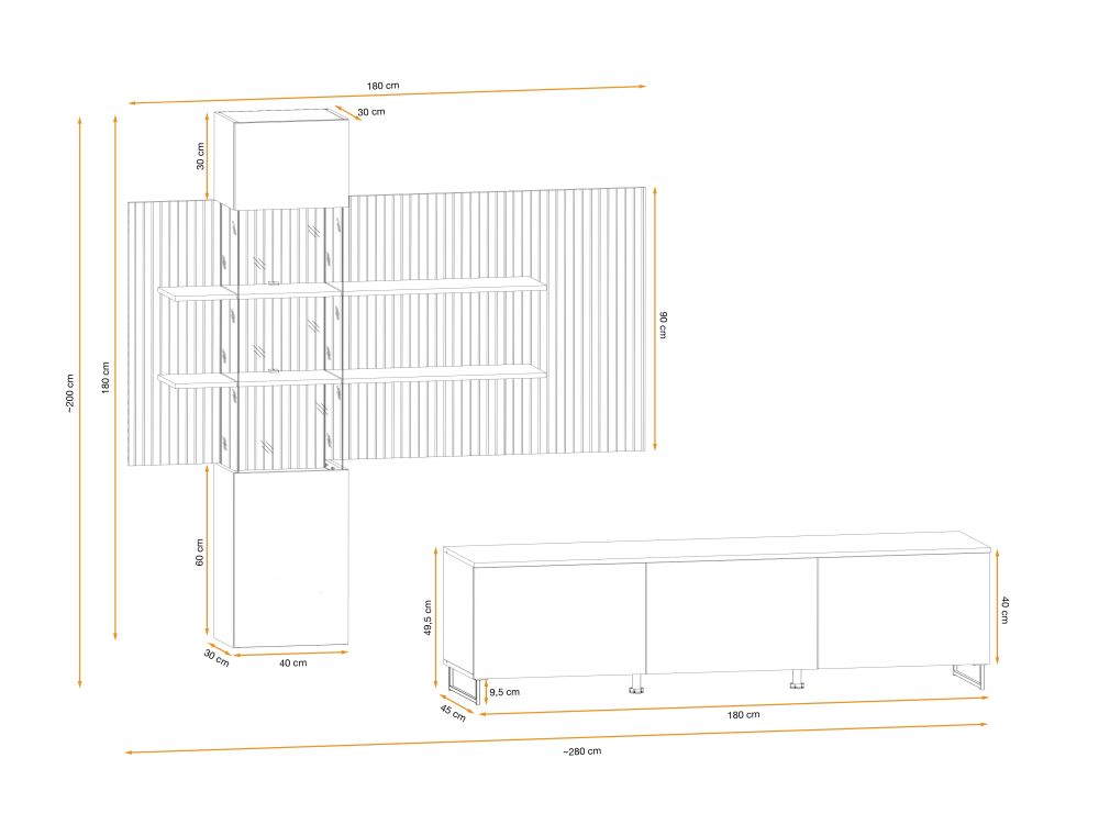 - szafka RTV – szer 180/ wys 49,5/ gł 45 cm,