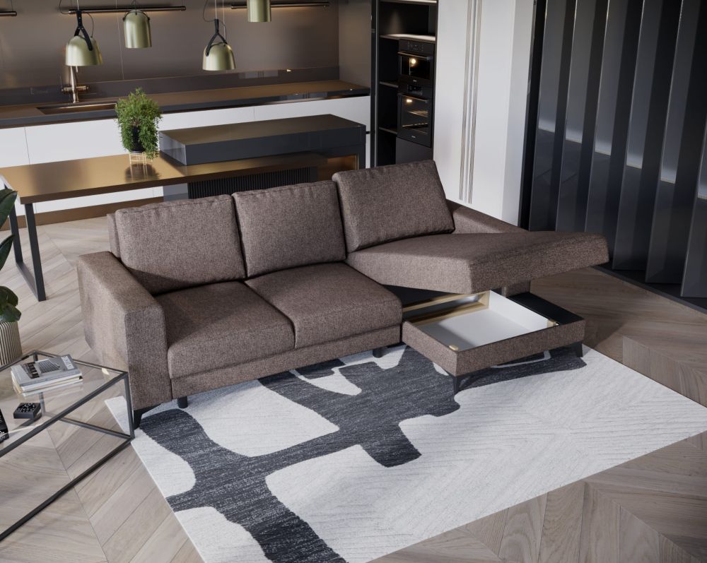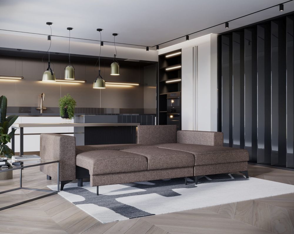 Minimalistyczna kanapa narożna rozkładana do spania ARSEN