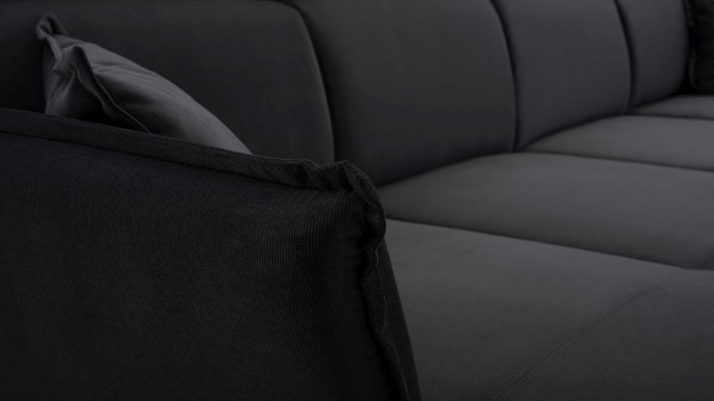 Możliwość dostosowania modułów do własnych potrzeb to ogromny atut tego narożnika! Dzięki temu świetnie dopasowuje się do różnych przestrzeni, a jego minimalistyczny design wpasuje się w każde wnętrze.