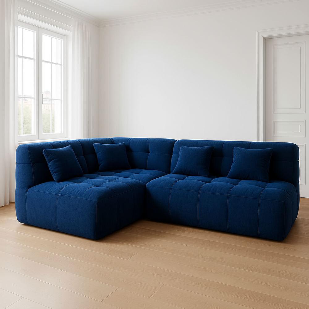 Wyjątkowo prezentuje się zarówno w surowych loftowych przestrzeniach, jak i ciepłych, przytulnych salonach. Jego design jest uniwersalny, ale nie banalny – wzbudza emocje, a jednocześnie pozwala oddychać całemu pomieszczeniu. Dzięki szerokiej gamie tkanin premium możesz go dopasować dokładnie tak, jak chcesz – od eleganckiego granatu po piaskowe beże i oliwkowe zielenie.