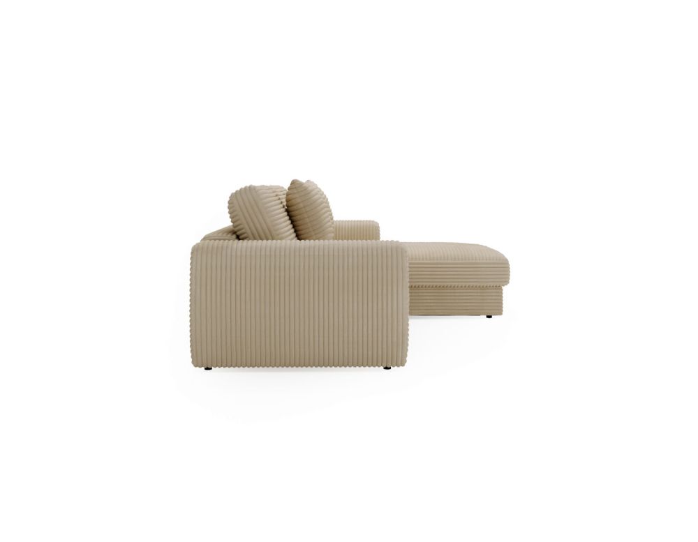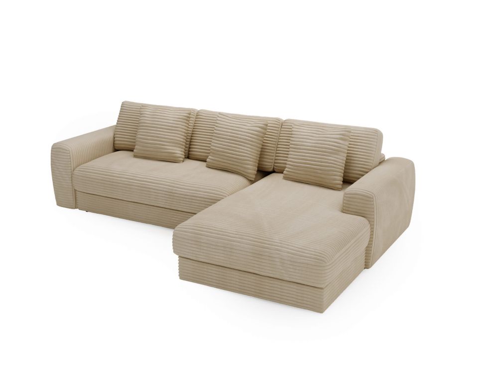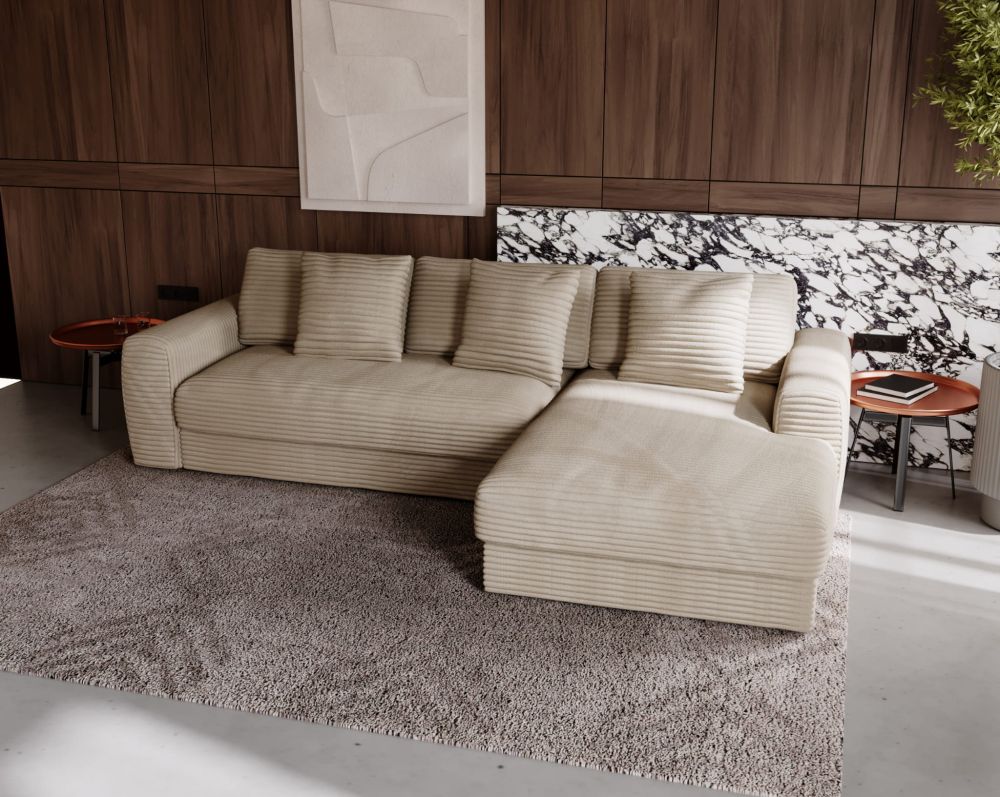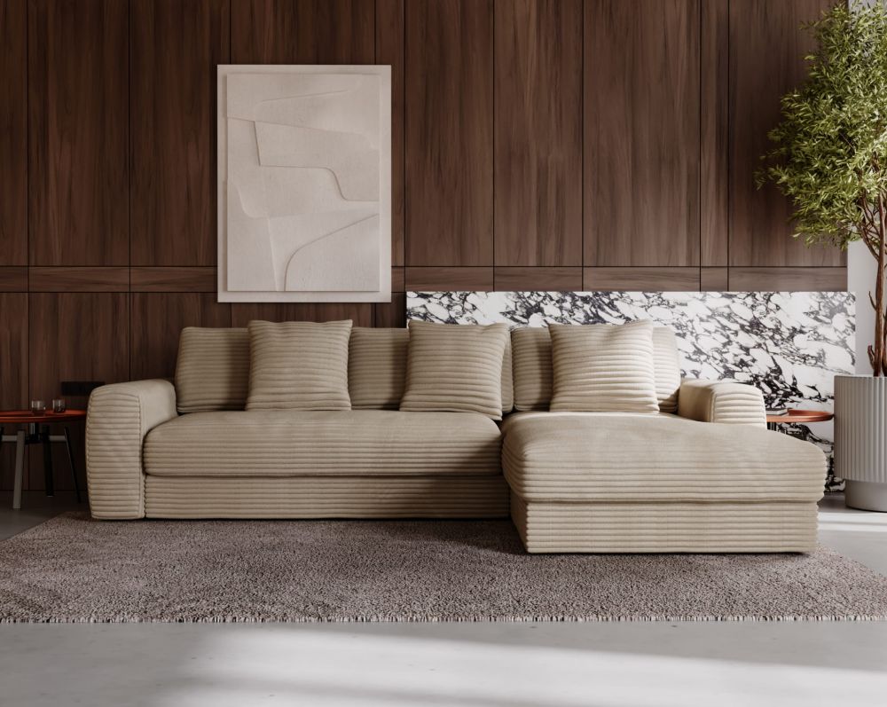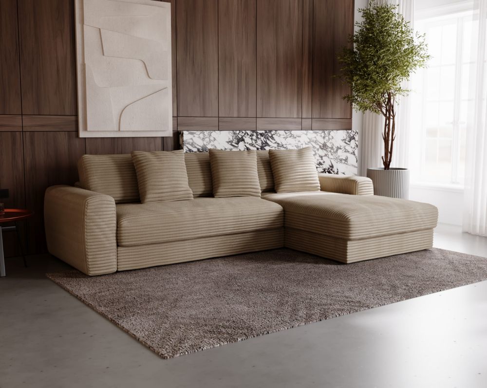Model HOMLA to propozycja dla tych, którzy cenią sobie przestrzeń, komfort i przemyślany design bez zbędnych dodatków. Ten duży, głęboki narożnik to idealne rozwiązanie do wypoczynku w salonie – sprawdzi się zarówno podczas rodzinnych spotkań, jak i leniwych wieczorów w pojedynkę. Charakteryzuje się miękkimi liniami, przemyślaną ergonomią i ponadczasową estetyką.