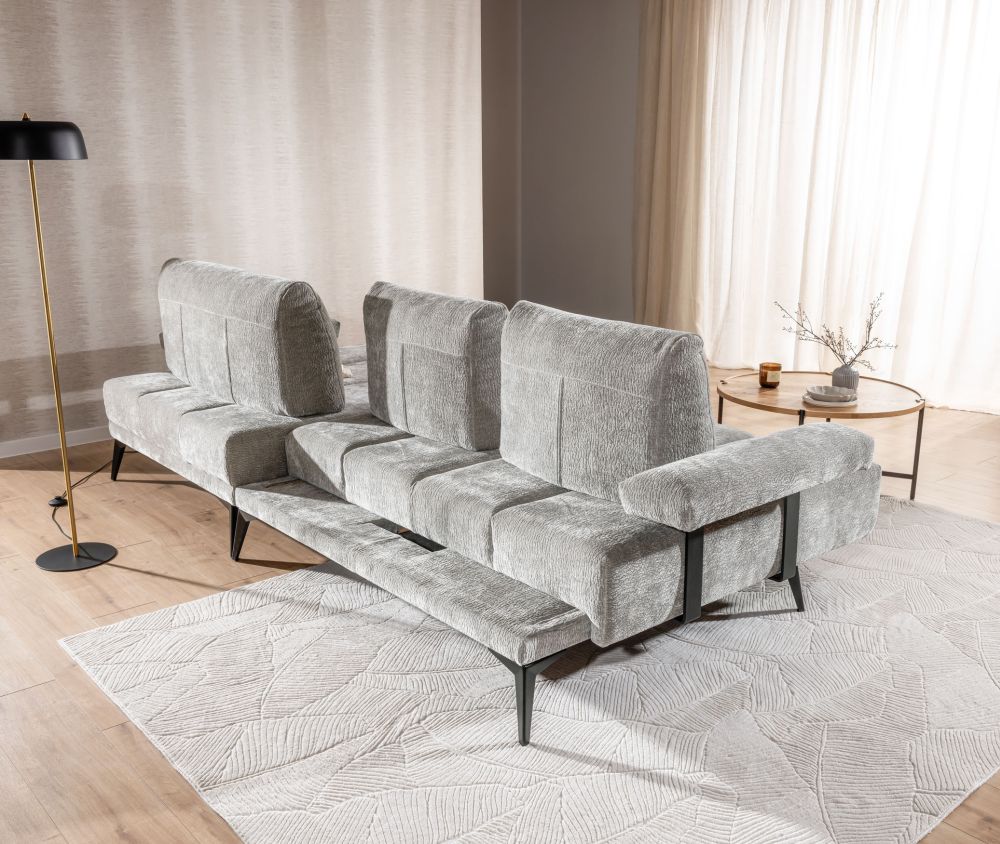 Narożnik elektryczny wyposażony jest w funkcję Relax, która pozwala na elektryczną regulację głębokości siedziska oraz przesuwanie oparcia. Dzięki temu możesz dostosować mebel do swoich indywidualnych potrzeb, zapewniając sobie i swoim bliskim maksymalny komfort podczas odpoczynku. Funkcja spania jest niezwykle praktyczna, zamieniając narożnik w wygodne łóżko w kilka chwil.