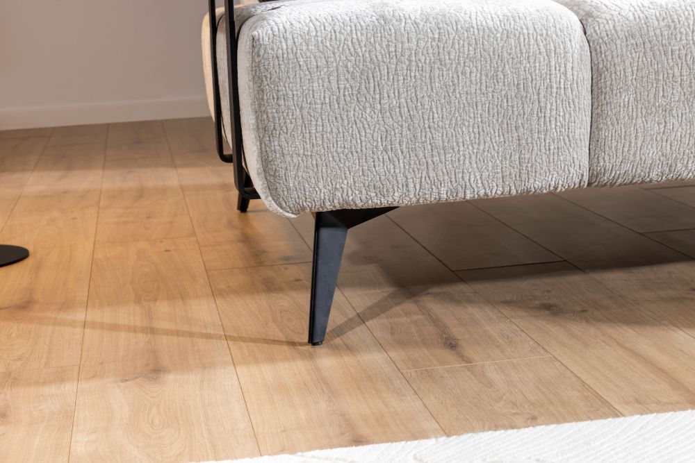 Wysokiej jakości pianka elastyczna i sprężyny faliste gwarantują doskonałe podparcie oraz trwałość, sprawiając, że narożnik zachowuje swój kształt i komfort przez długie lata. Metalowe, czarne nóżki oraz elementy drewniane dodają meblowi nowoczesnego charakteru, a solidna konstrukcja z płyty wiórowej zapewnia stabilność i wytrzymałość.