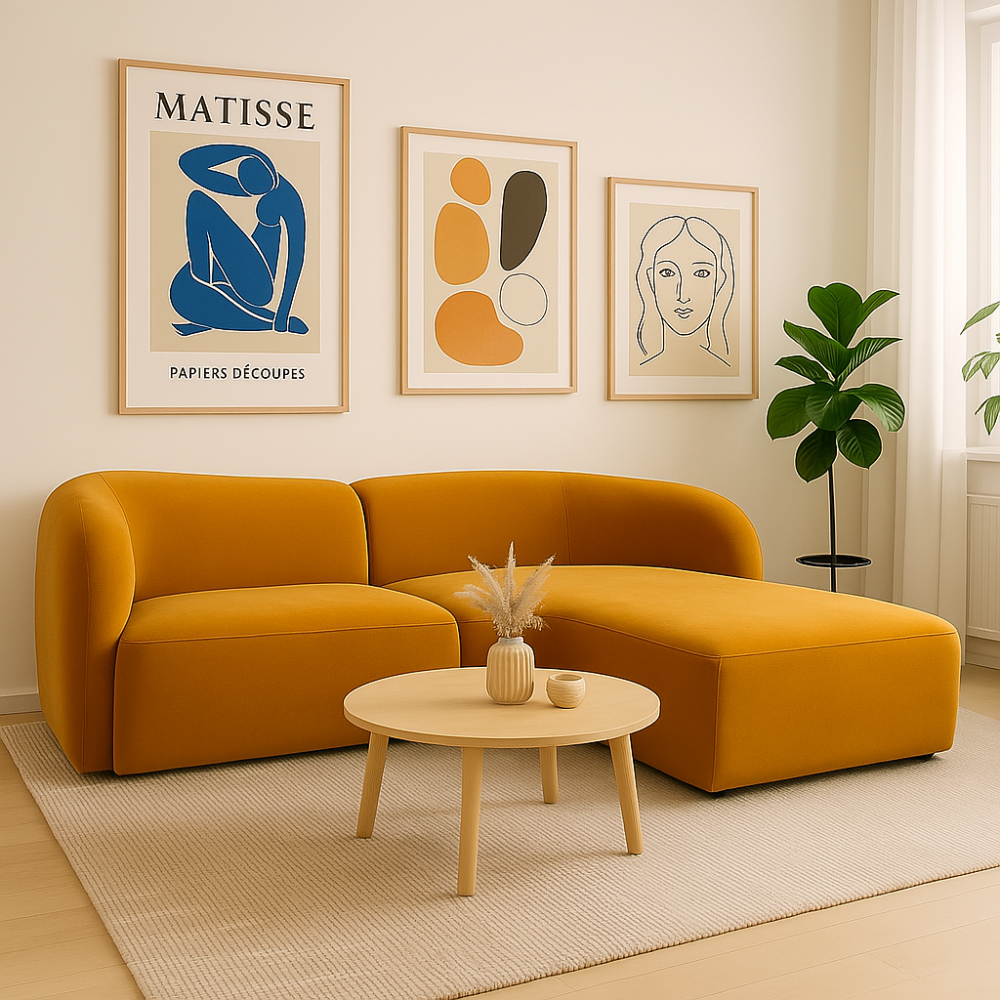 Dostępny w szerokiej gamie tkanin i kolorów – od eleganckich odcieni szarości i beżu, po odważniejsze barwy jak oliwka czy bursztyn – pozwala dopasować się do każdej przestrzeni. Może stanowić subtelne tło dla reszty aranżacji lub być jej centralnym, przyciągającym wzrok punktem.