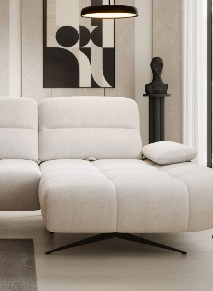 Narożnik DIVA to propozycja dla osób, które cenią luksusowy design, możliwość personalizacji oraz ponadprzeciętną wygodę na co dzień. Jego nowoczesna linia, podkreślona delikatnym pikowaniem, tworzy harmonijne połączenie stylu i funkcjonalności – idealne zarówno do eleganckiego salonu, jak i nowoczesnej, minimalistycznej przestrzeni.
