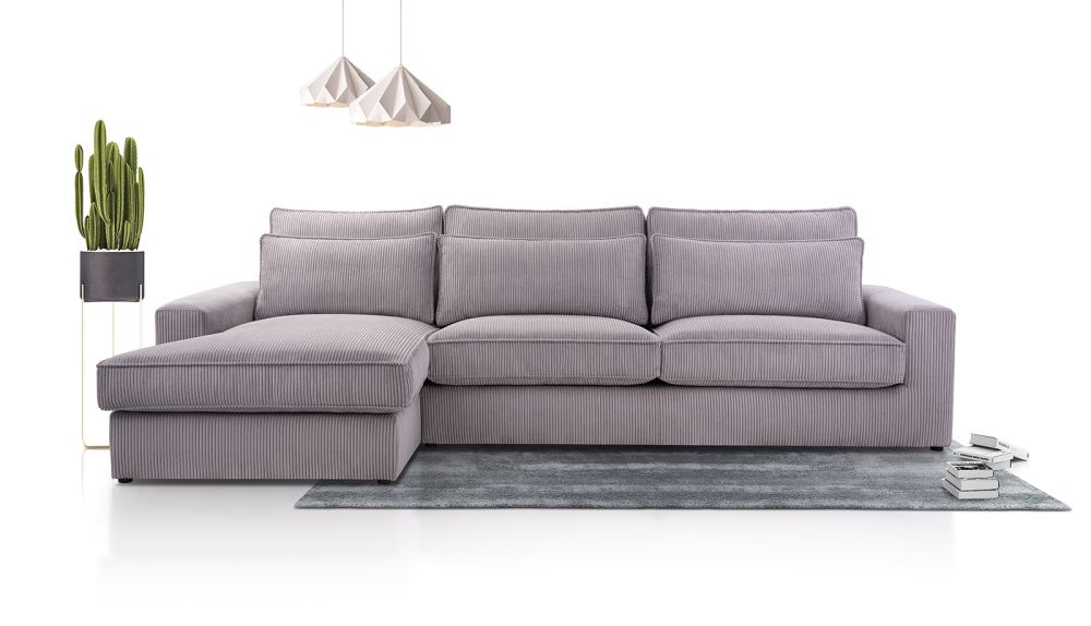 COMFORTO 2 to narożnik sztruks w całości obity jest tkaniną sztruksową i zapewniamy, że jeszcze piękniej prezentuje się jako duży narożnik na środku pokoju. Ten nierozkładany narożnik 3 osobowy do salonu z głębokim siedziskiem wyposażony jest w miękkie poduszki z poszewkami z zamkami błyskawicznymi – poszewki można bezpiecznie wyprać w pralce. Wszystkie małe i duże poduszki do narożnika otrzymujecie Państwo w komplecie z prezentowaną kanapą narożną. Nie da się ukryć, że kwintesencją wygodnego wypoczynku jest narożnik z szerokim szezlongiem, dokładnie taki jak narożnik COMFORTO 2.