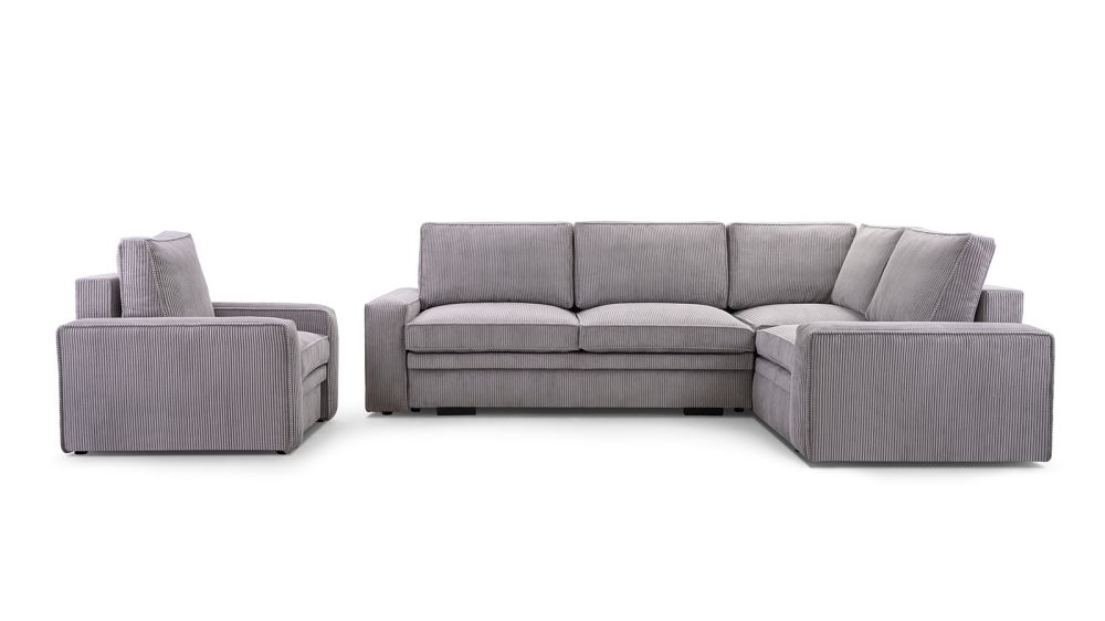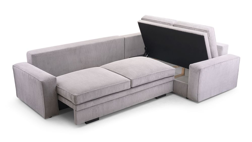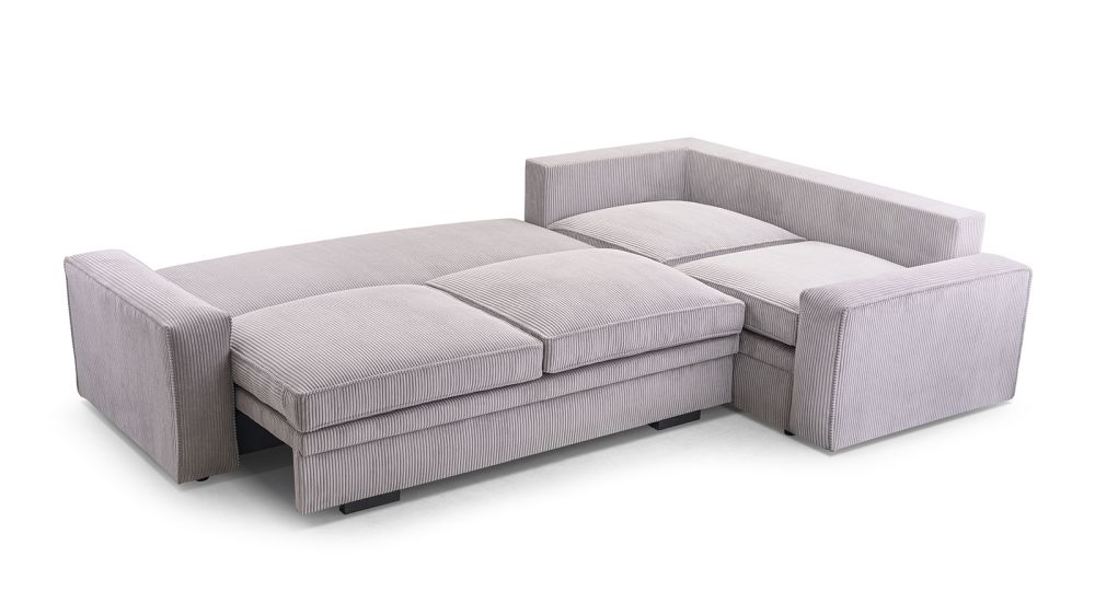 Narożnik sztruksowy rozkładany z bardzo dużą powierzchnią spania COMPLEX to doskonałe rozwiązanie zarówno do salonu, jak i docodziennego spania.